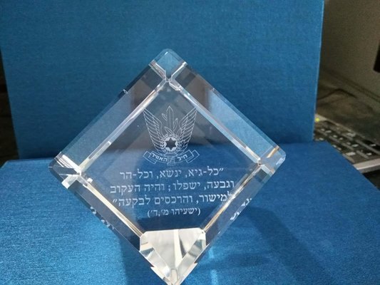קוביית קריסטל עם חריטה 3D