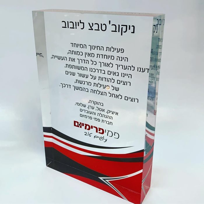 בלוק אקרילי מודפס 10*15*3 ס"מ