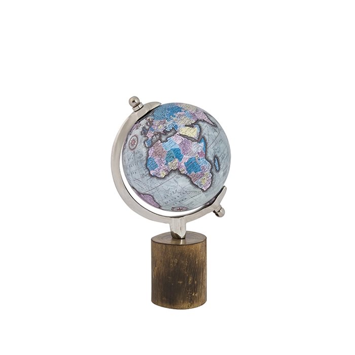 גלובוס-אפור-מדיני-עם-קשת-מתכת-על-בסיס-עץ-עגול