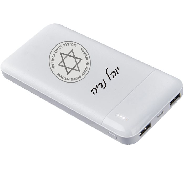 פאוור בנק סוללת גיבוי 10,000 MAH עם לוגו מדא ושם אישי חרוט