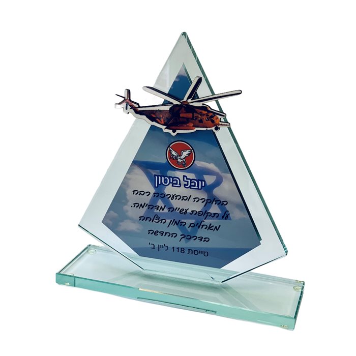 מגן הוקרה שכוכית משולש+חיתוך מסוק בלייזר