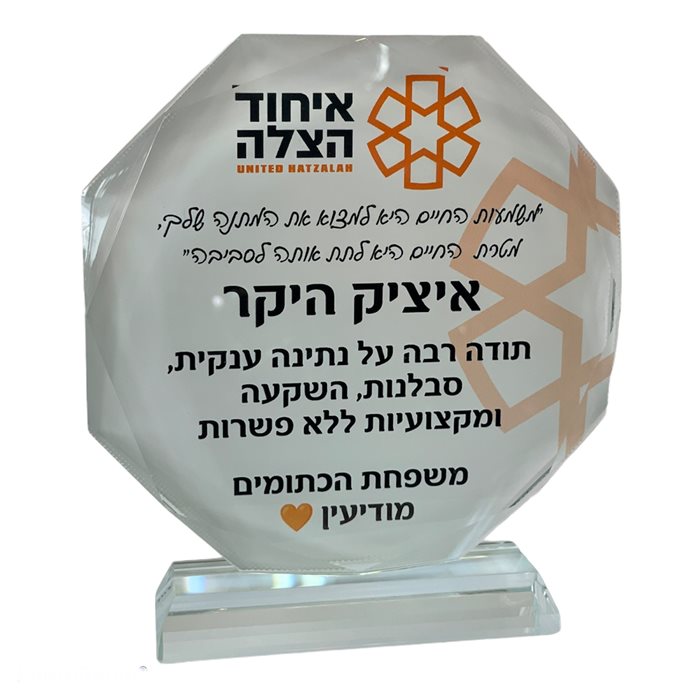 מגן הוקרה מתומן קריסטל גובה 20 ס"מ