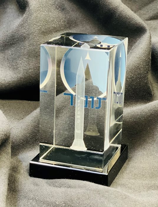 קוביית קריסטל + בסיס +הדפסה וחריטה מינימום 100 יח' להזמנה