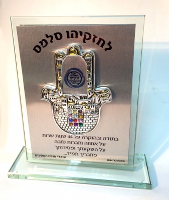מגן הוקרה זכוכית מלבני עם חמסה ציפוי כסף