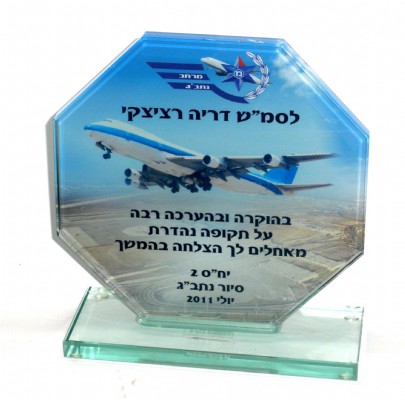 מגן הוקרה מטומן עם הדפסה על גבי הזכוכית