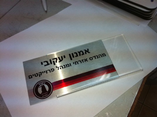 שלט פרספקס למשרד עם לוח מתכת