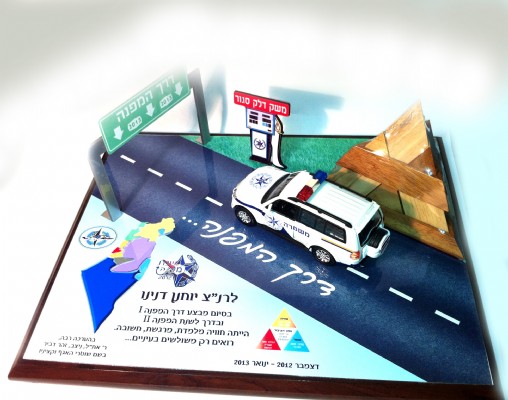 לוח הוקרה שהוכן למפכ"ל עם אלמנטים תלת מימדיים