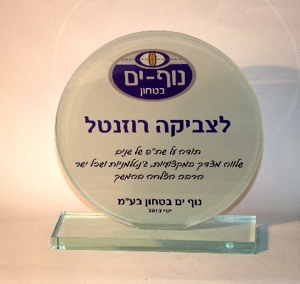 מגן הוקרה עגול עם הדפסהי שירה על הזכוכית 15 ס"מ גובה