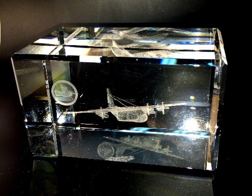 קוביית קריסטל עם חריטה בתלת מימד