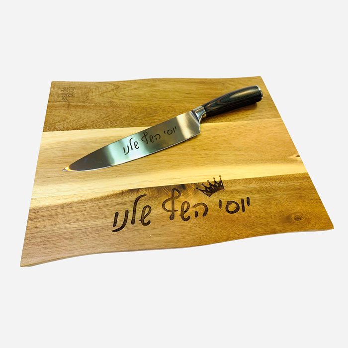 קרש בוצ'ר עץ שיטה 38*30 ס"מ+ סכין שף יפנית + חריטה ללא הגבלה