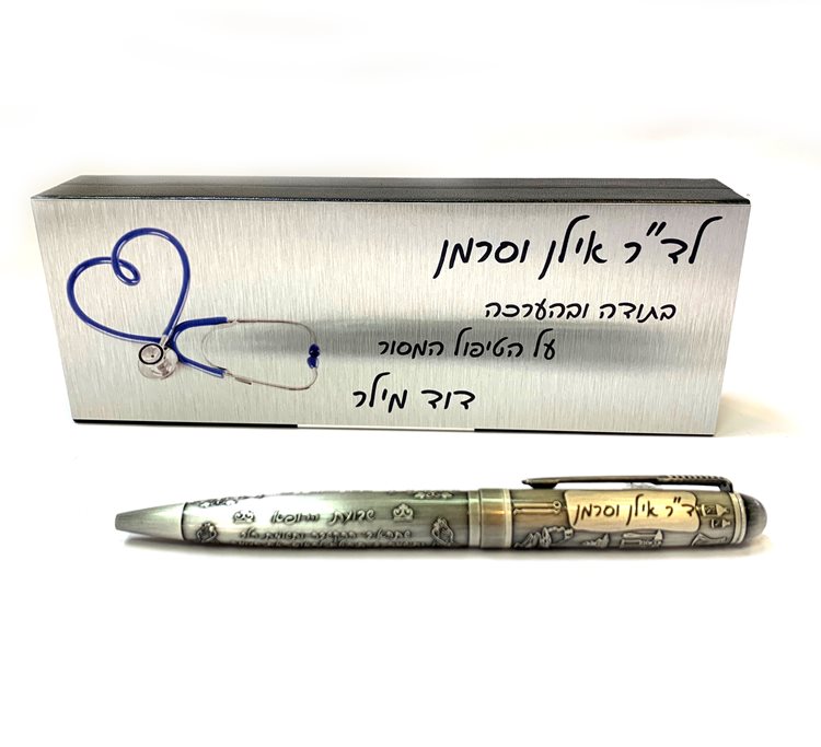 עט שבועת הרופא+ חריטה +קופסא עם הקדשה